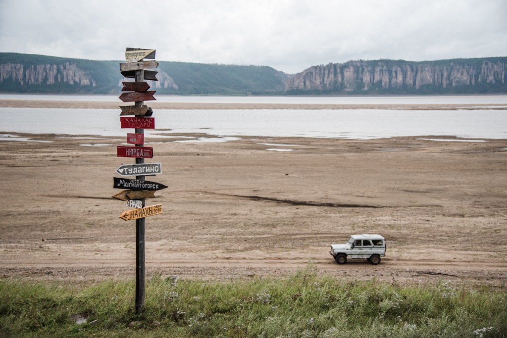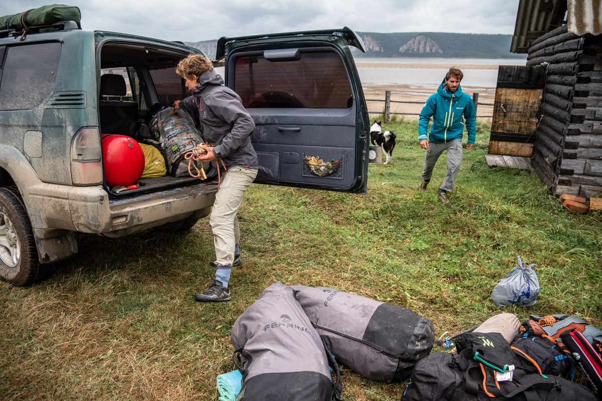 Il pleut à nouveau sur les rives de la Lena. On range l’ensemble de nos affaires, en grignotant par-ci par-là un petit bout de pain recouvert de lait concentré sucré. Pour limiter les frais, un ami d’Alexander, nommé Constantine, nous amènera en Jeep jusqu’à Bottomaï, le village de pêcheur qui est en face du Parc National des Colonnes de la Lena, sur la rive habitée. Ensuite, deux autres amis, Ruslan et Dima, nous rejoindront avec leur bateau et nous aideront à passer sur la rive sauvage, où les immenses Colonnes nous attendent.