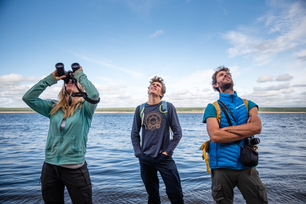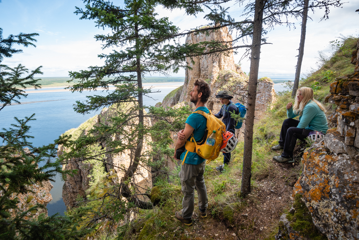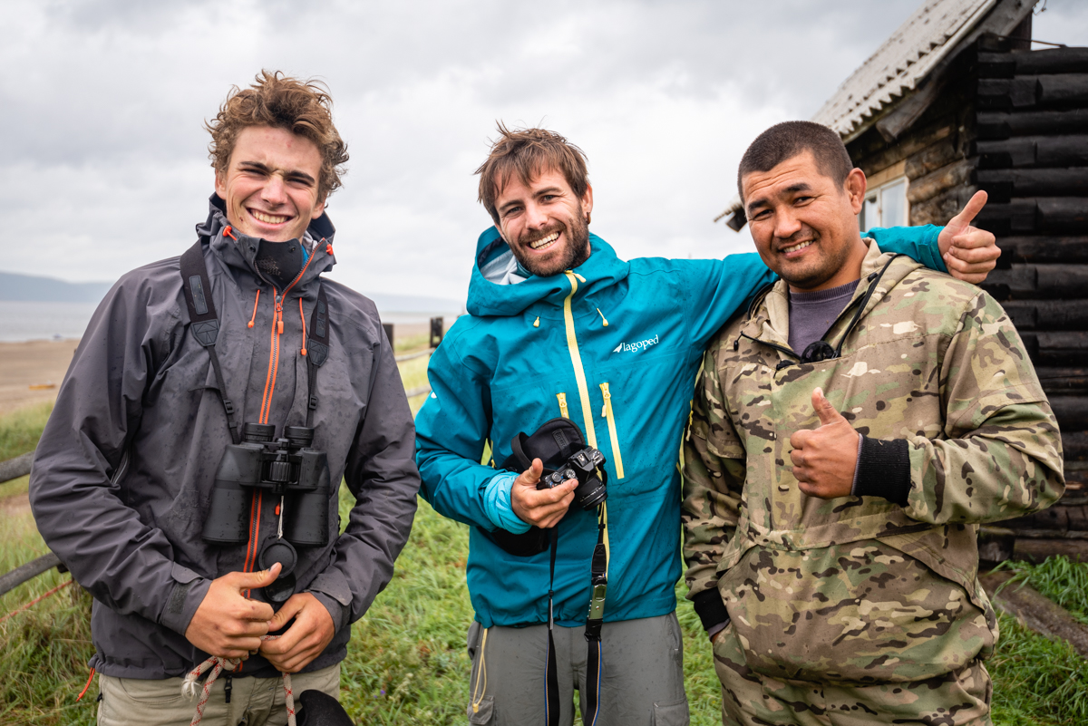 Le deuxième jour, bien que la météo ne soit pas très clémente, Alexander et Agaal (le jeune garde du Parc) nous amènent 10 kilomètres à l’intérieur des terres, en direction d’un autre secteur de Colonnes, plus sauvages et jamais fréquentées. On croise des empreintes d’ours, qui semblent nous indiquer la présence récente d’une maman et de son petit (à ce moment-là, Agaal rentre précipitamment au camp, certainement peu à l’aise dans l’environnement peuplé d’ours…).